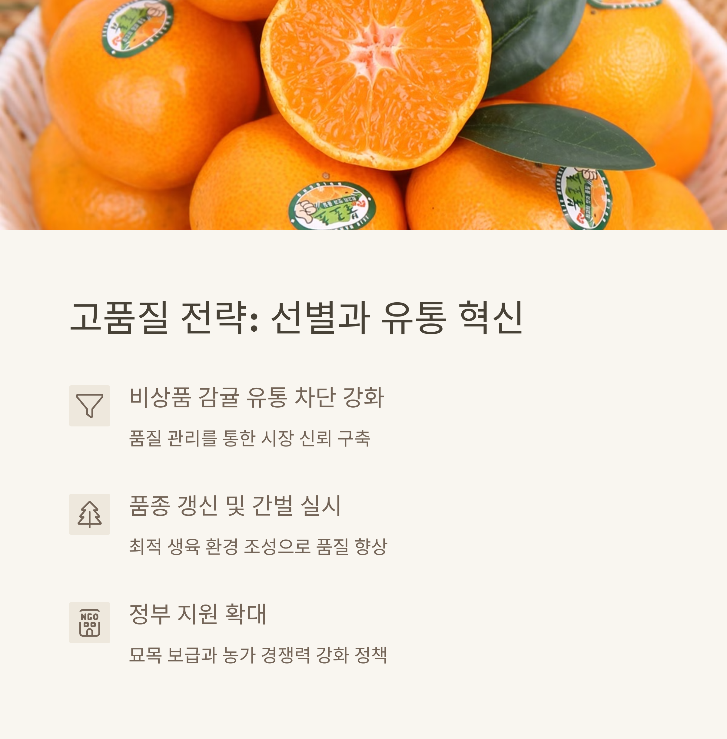 | 고품질 전략 효과 | 고당도 감귤 프리미엄 상승, 품위별 가격 격차 확대 |