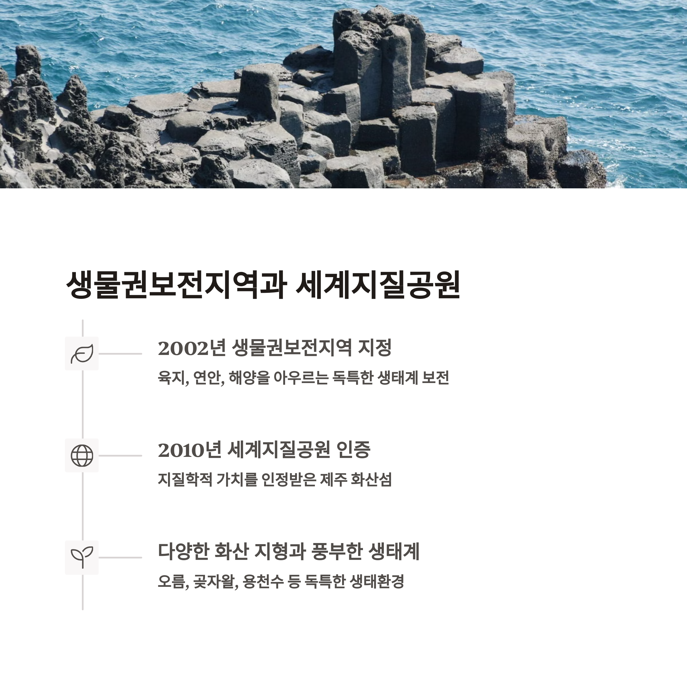 세계 유일한 유네스코 3중 인증 지역 학술적 연구 가치와 지질 보존의 상징 바다, 산, 숲이 공존하는 생태 보물섬