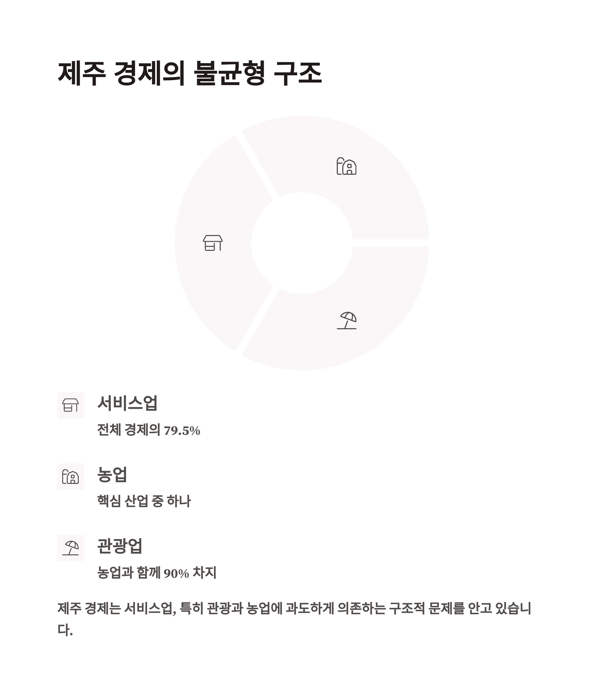 | 제주 경제의 특징 | 관광업과 농업에 크게 의존하는 구조 |