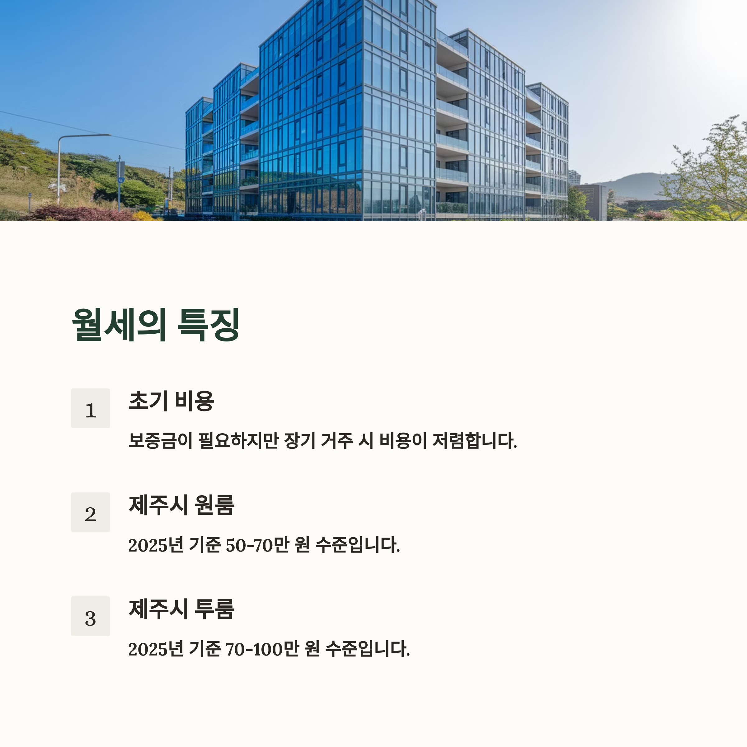 제주 월세 평균 50~100만 원, 장기 거주 시 유리