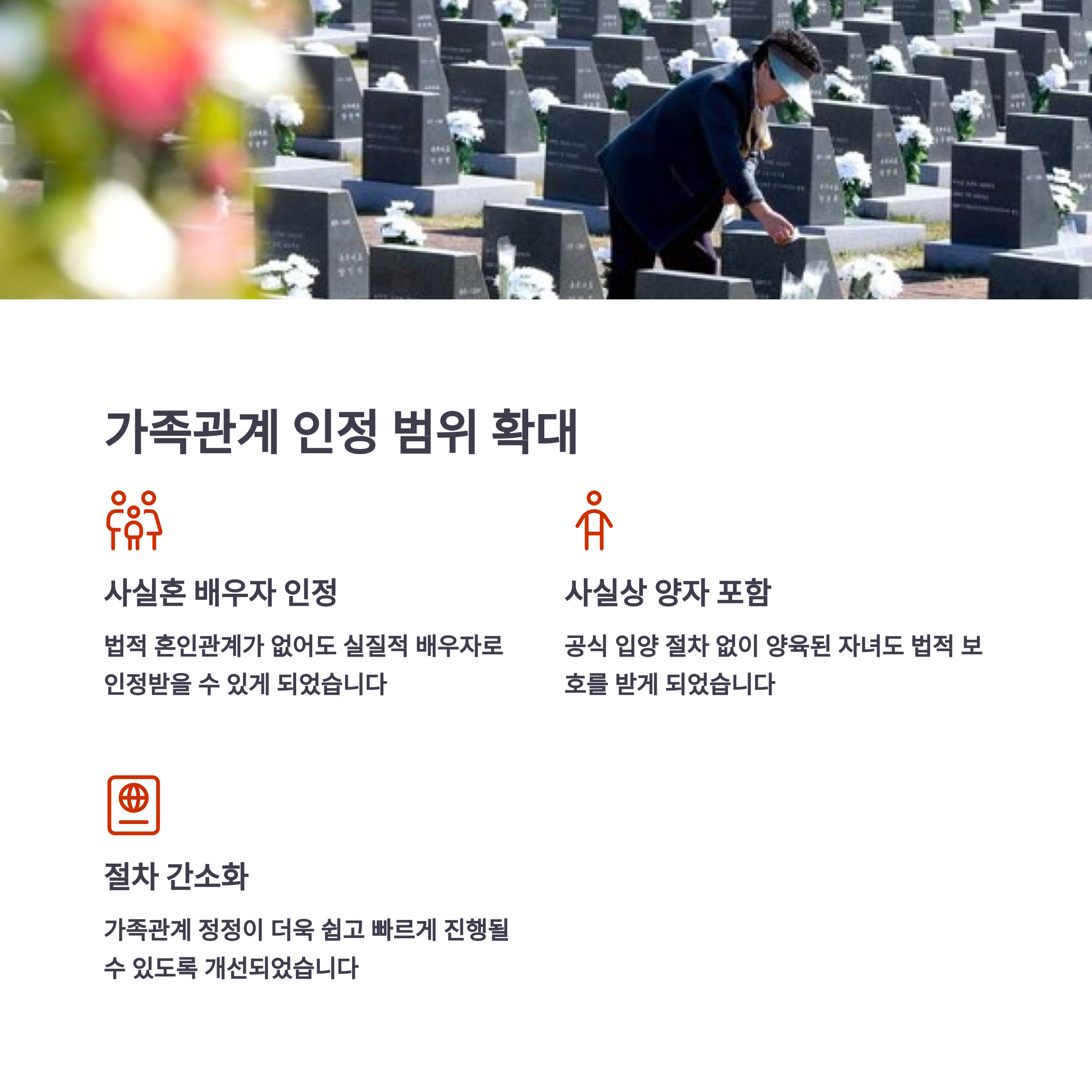| 명예 회복 절차 개선 | 가족관계 정정과 재심 청구가 쉬워졌습니다. |