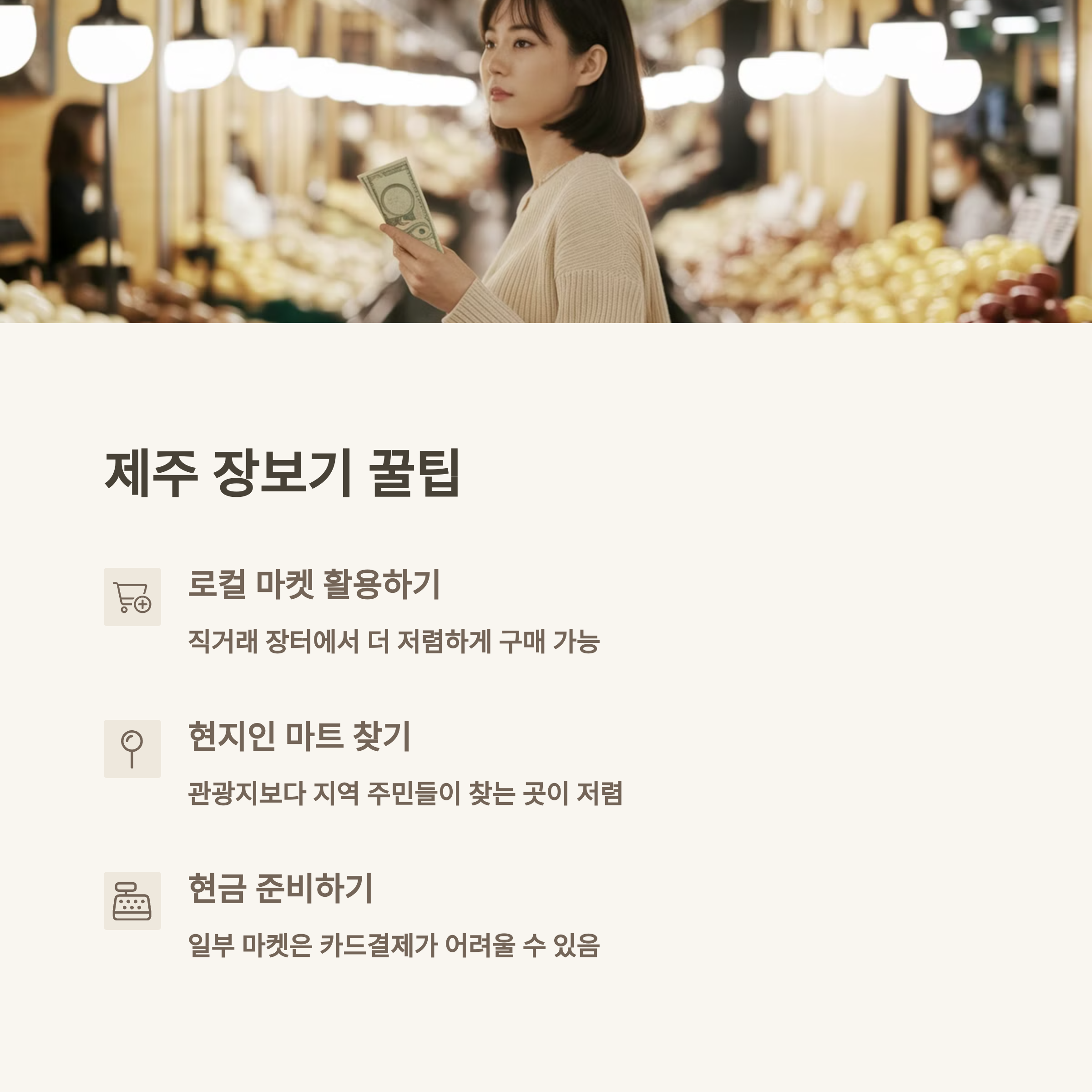 로컬 마켓이나 직거래 장터를 이용하면 신선한 농수산물을 저렴하게 구매할 수 있고, 관광지 주변보다는 지역 주민들이 자주 찾는 마트를 이용하는 것이 유리합니다. 또한, 일부 로컬 상점에서는 카드 결제가 어려울 수 있으므로 현금을 준비하는 것도 좋은 방법입니다.